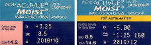 To place an order for contact lenses, you need to know your prescription (eye power) in the first place, and sometimes the measurements (base curve). Usually, the prescription and measurements of the contact lenses that you are using are printed the contact lens package or box that you are currently using. This is how it looks like, although different brands of contact lens may be slight different, but generally all the important information are there.